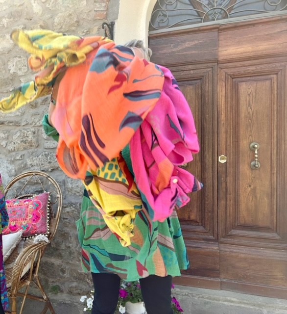 Vaatteen tulee olla sellainen jota tulee käytettyä ja jossa on hyvä olla. Ripaus naisellisuutta ja sopivasti väljyyttä. Suurin osa tuotteistamme tulee Italiasta.