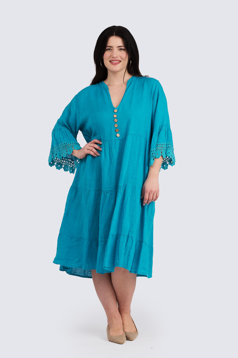 Alba pellavamekko – turkoosi