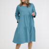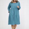 Reilun väljä istuvuus ja hieman alaspäin levenevä helma laskeutuvat kauniisti, ja pitkät hihat tuovat lämpöä viileämpiin päiviin. Sivuilla on käytännölliset taskut, jotka tekevät mekosta entistäkin monikäyttöisemmän. Tämä mekko sopii yhtä hyvin rentoon arkeen, kun sen yhdistää esimerkiksi lenkkareihin tai siistimpiin kenkiin.