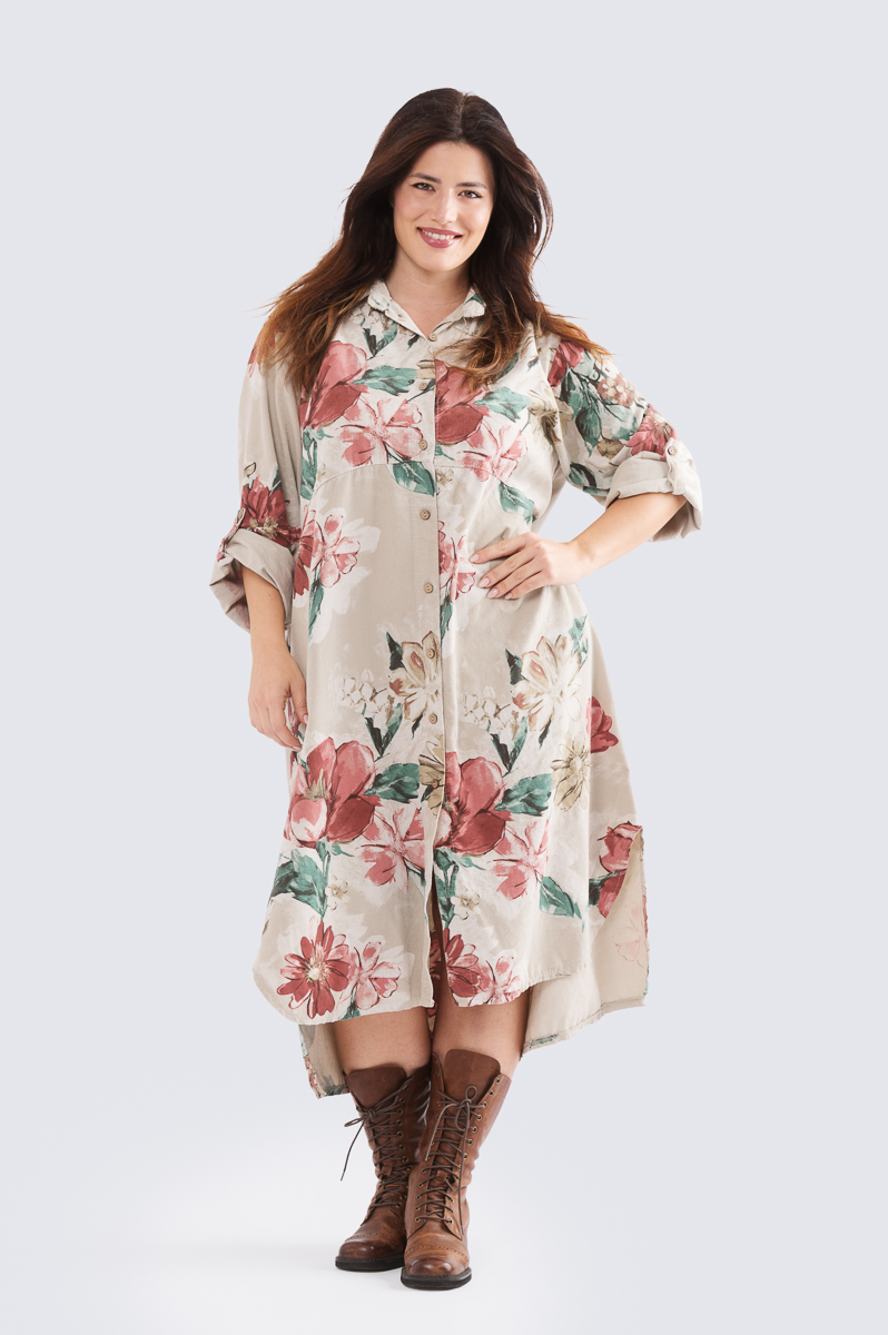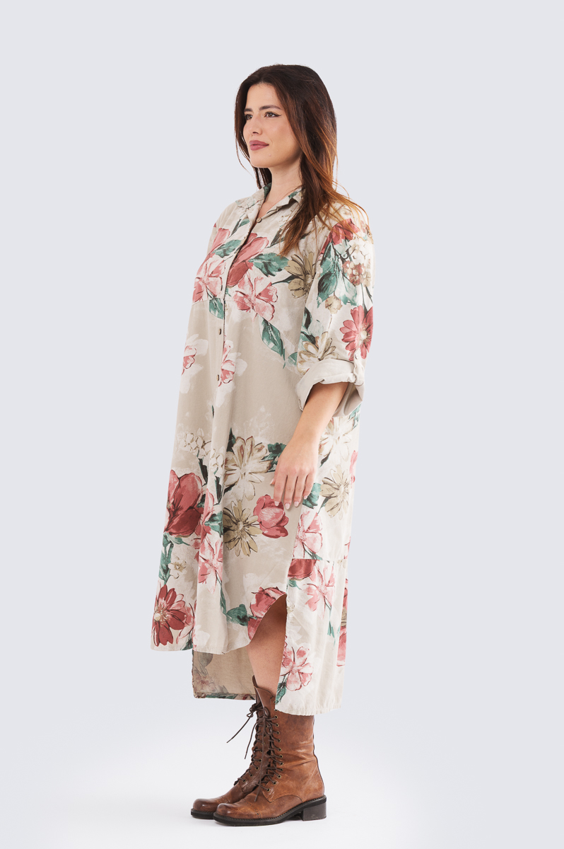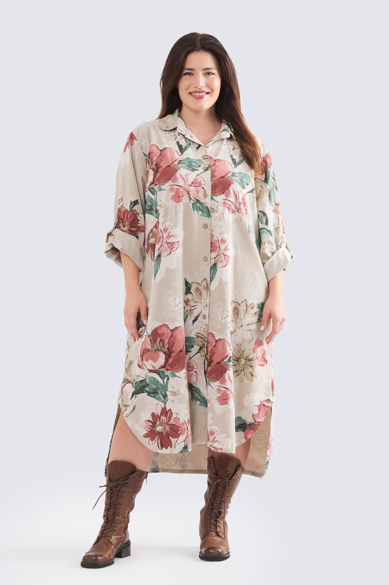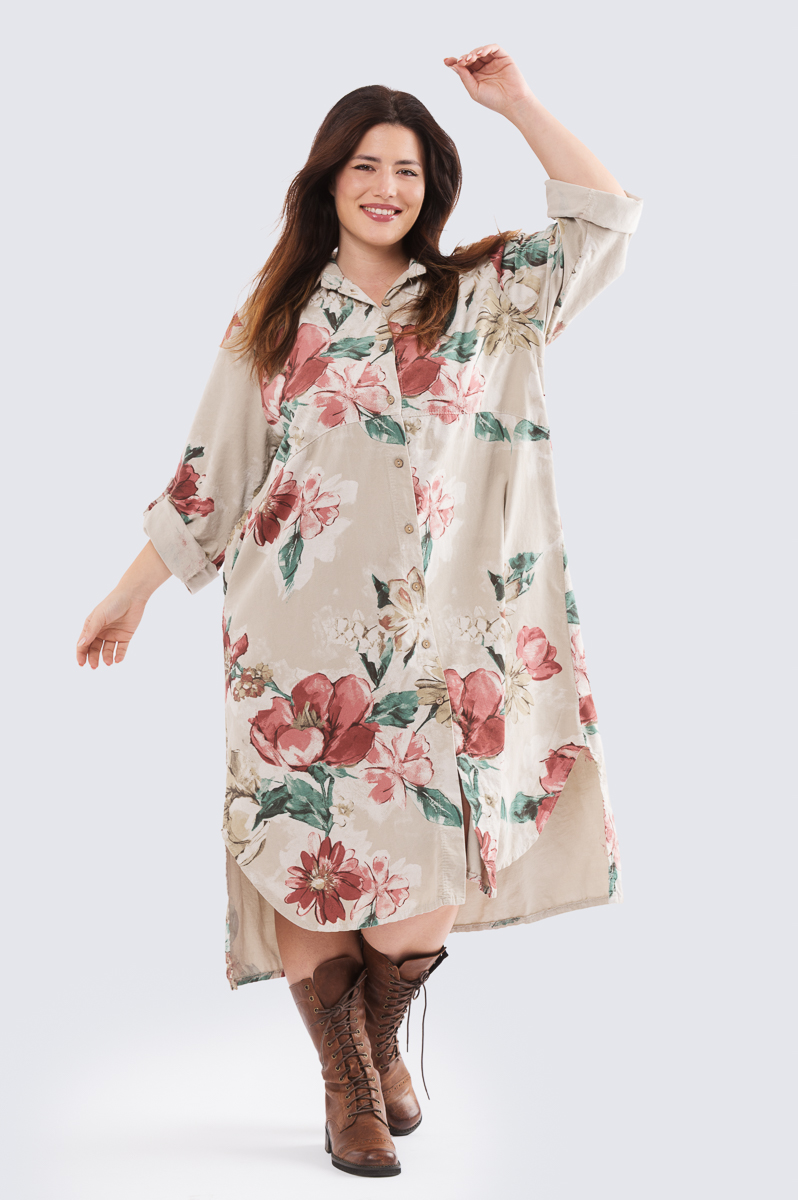 Beatrice -samettimekko on pehmeää kevyttä vakosamettia. Heitä mekko ylle kotona tassutellessa, kauppaan lähtiessä tai toimistolle suunnatessa – kuviollinen mekko toimii myös kevyenä takkina. Rentoutta ja monikäyttöisyyttä pitkään takkiin on tuotu sivuilta löytyvin taskuin. Pue housujen kaveriksi tai käytä mekkona. Pitkän hihan voit rullata tampin avulla hiukan lyhyemmäksi.