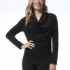 Säihkettä ja tyylikkyyttä jokaiseen juhlaan – Biba juhlapusero hurmaa kauniilla laskeutuvuudellaan ja ylellisellä kiillollaan. Kankaan pinnalle kiinnitetyt hopeanväriset koristekivet tuovat puseroon hienostunutta juhlatunnelmaa ja tekevät siitä täydellisen valinnan juhlavaan illanviettoon tai pikkujouluihin. Mukava, joustava materiaali tuntuu miellyttävältä päällä ja laskeutuu kauniisti, korostaen naisellista siluettia. Elegantti leikkaus ja näyttävä drapeeraus edessä viimeistelevät asun upeasti. Täydennä asusi kapeilla housuilla tai hameella ja lisää suosikkikorusi – ja olet valmis loistamaan!