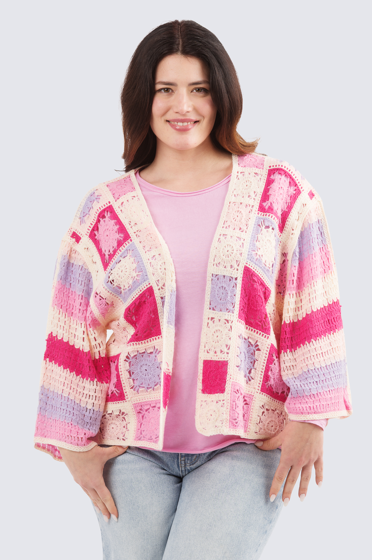 Boheemi neuletakki, joka muistuttaa perinteistä käsinvirkattua, mikä tekee tästä neuletakista erityisen viehättävän. Pue pehmeä neuletakki trikoopuseron päälle, piristä yksiväristä vaatetta tai heitä ylle hihattoman mekon kaveriksi. Tämä neuletakki on omiaan viimeistelemään ja värittämään erilaisia asukokonaisuuksia.