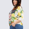 Pirteä sitruunakuvioinen neule Frida Kahlon kuvalla