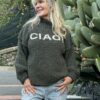 Ciao neuleessa etuosassa lukee isolla teksti CIAO!, joka tarkoittaa italiaksi “hei” tai “moikka”. Tämä rennon tyylikäs neule yhdistää mukavuuden ja käytännöllisyyden: yksinkertainen poolokaulus pitää lämpimänä ja tekee neuleesta helpon yhdistellä niin arkeen kuin vapaa-aikaan. Pehmeä materiaali tuntuu miellyttävältä ihoa vasten, ja iloinen teksti tuo ripauksen persoonallisuutta asuusi.