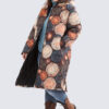 Tämä takki on täydellinen valinta, kun haluat yhdistää mukavuuden, tyylin ja ripauksen iloa. Polvipituinen kevyttoppatakki lämmittää kevyesti ja tuntuu miellyttävältä päällä – samalla upea kuosi tekee siitä asusi piristävän katseenvangitsijan.