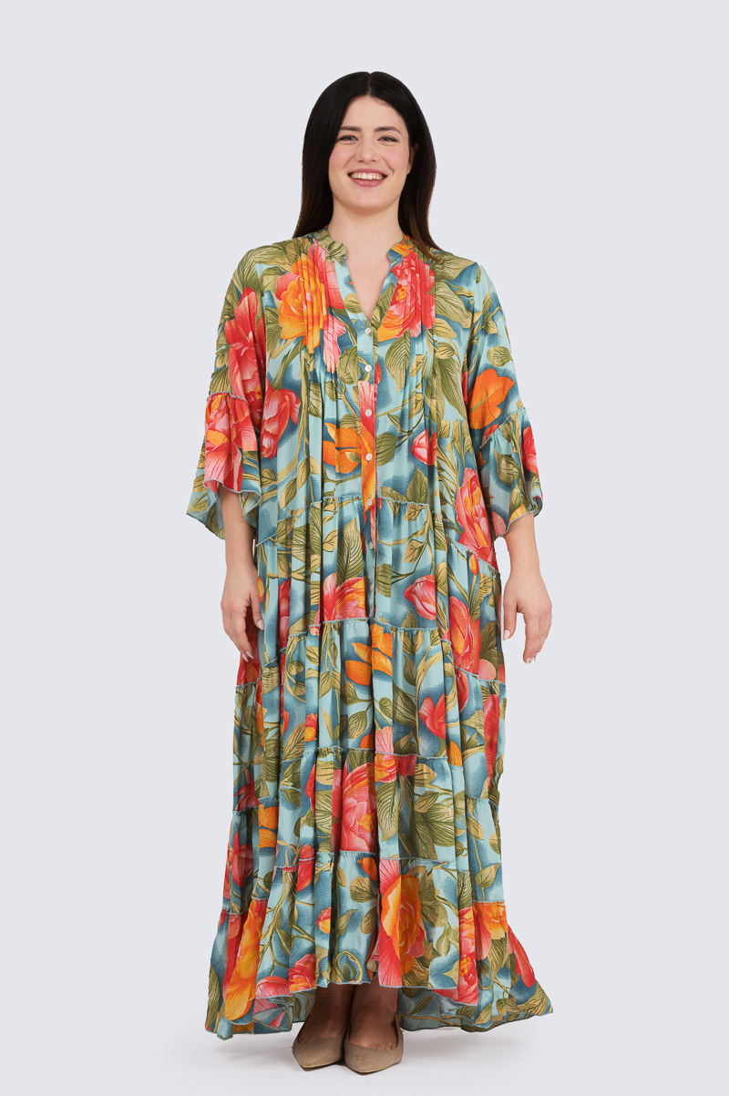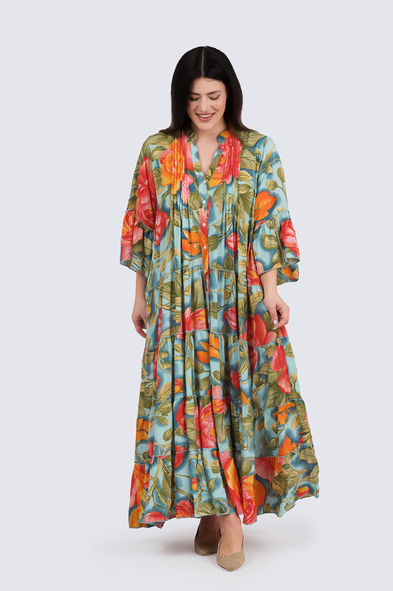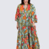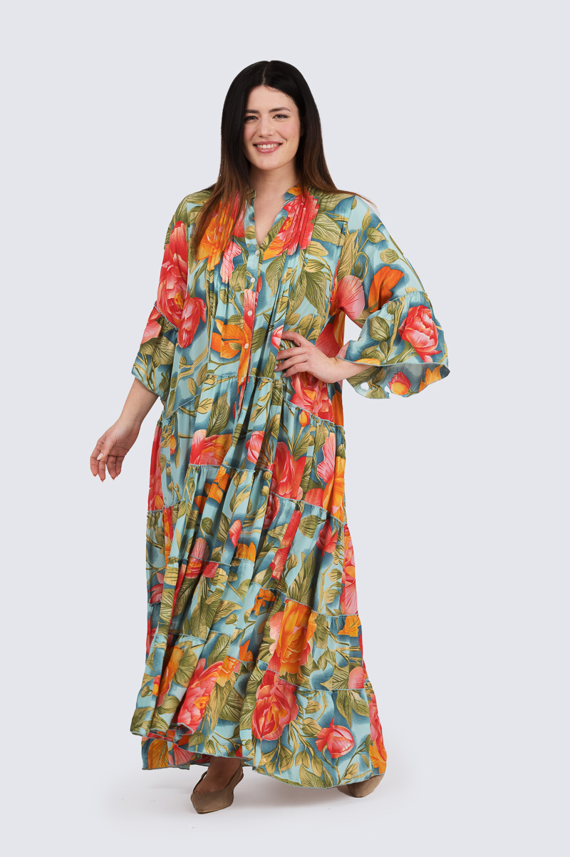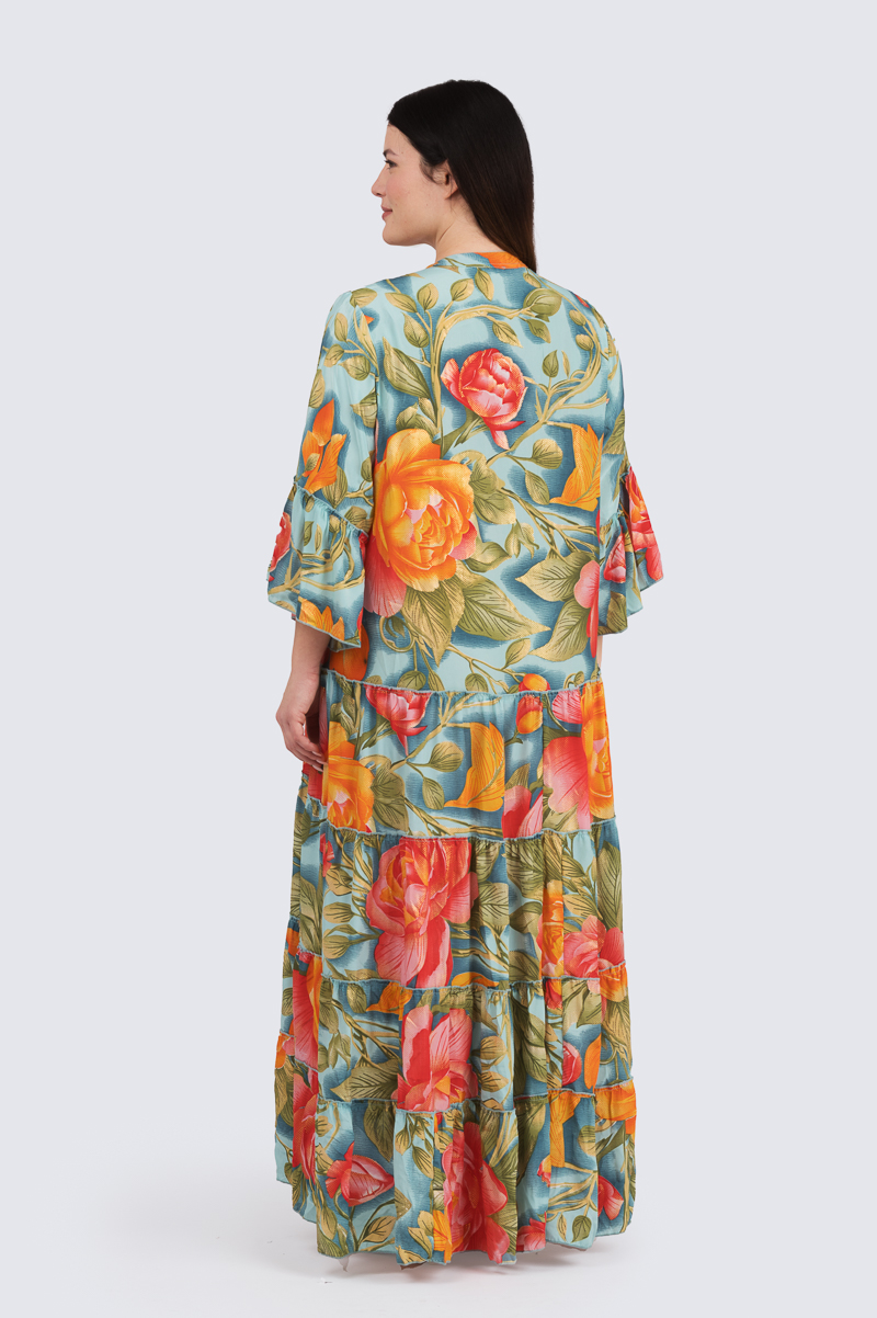 Collina pitkä mekko- turkoosi/oranssi