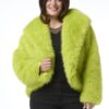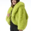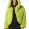 Diva keinoturkistakki – hupullinen limevihreä tekoturkis