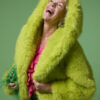 Diva keinoturkistakki – hupullinen limevihreä tekoturkis