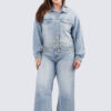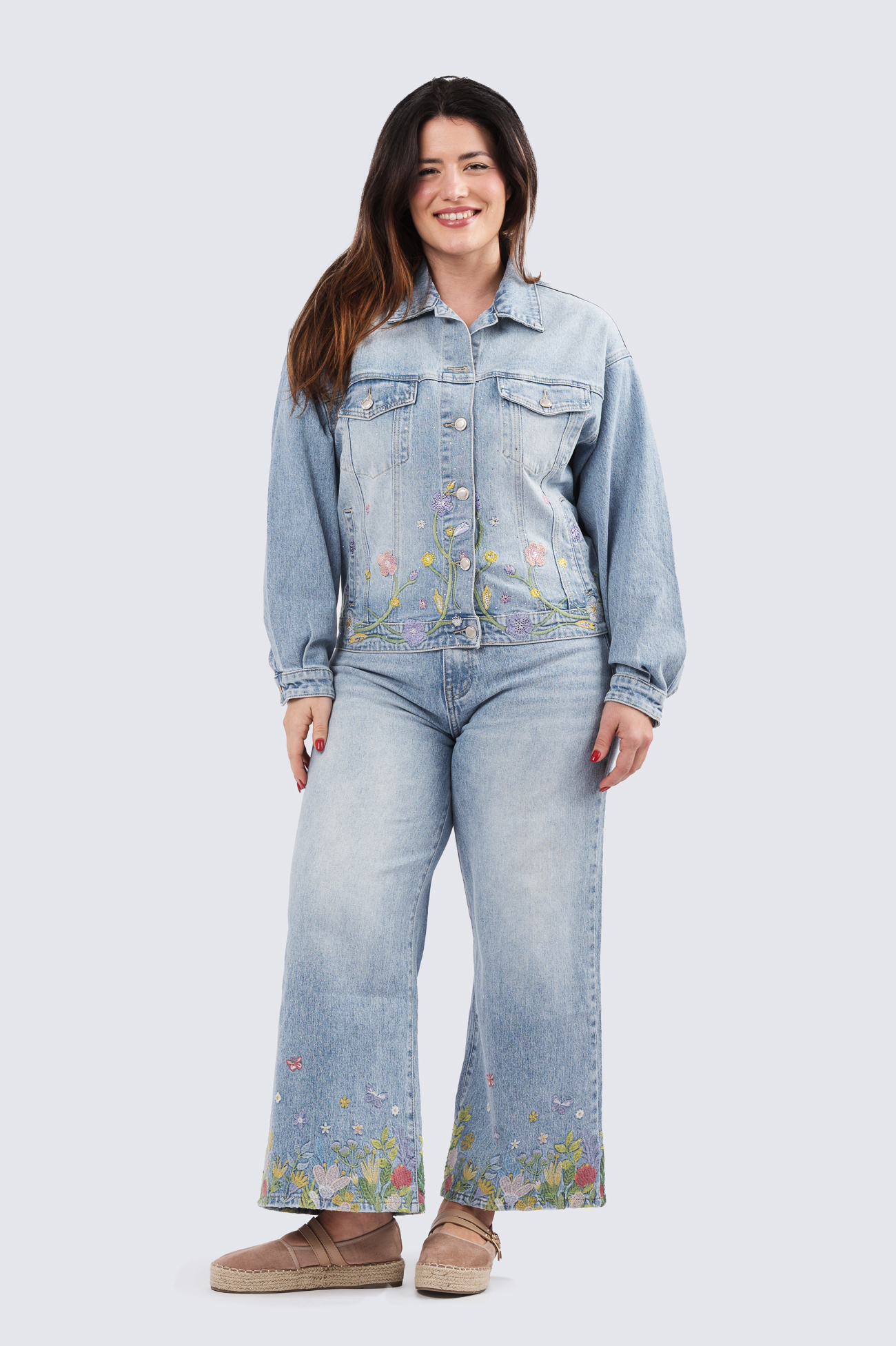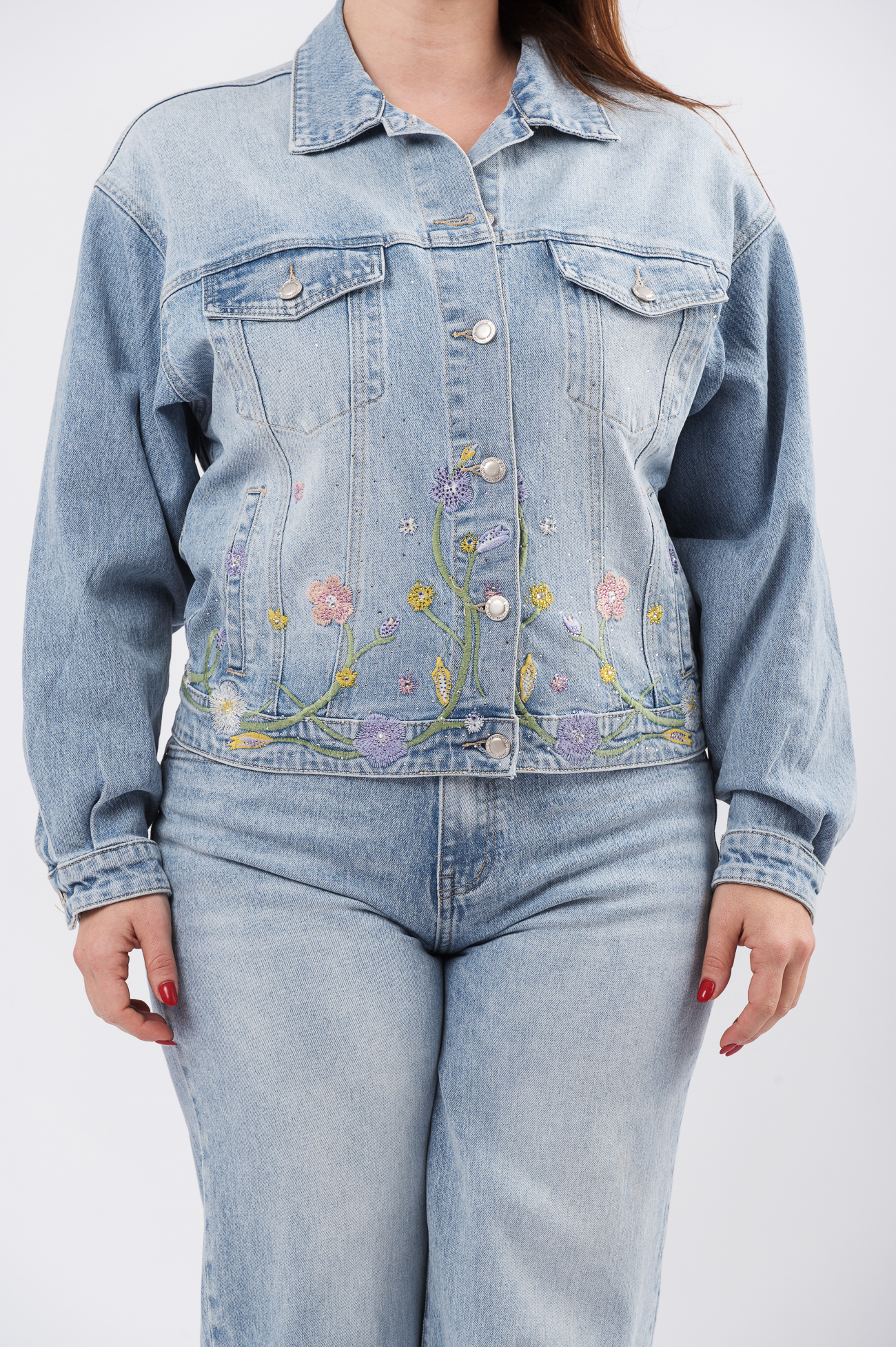 • Farkkutakki kukka brodeerauksella ja strasseilla