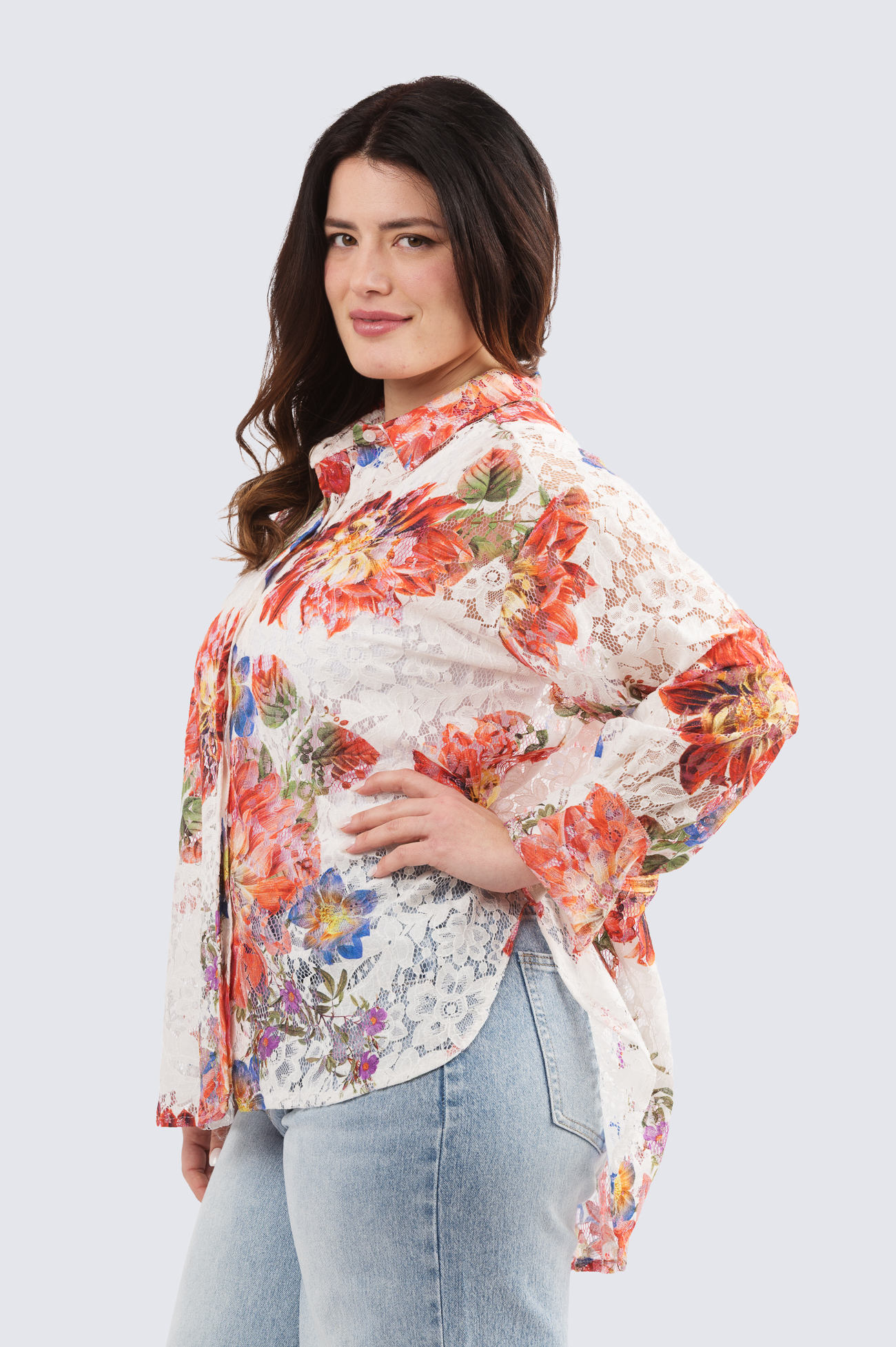 Pitsinen kauluspaita kauniilla kukkakuviolla