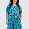 Reilun mittainen tunika syvillä taskuilla, ajaton kuviointi.