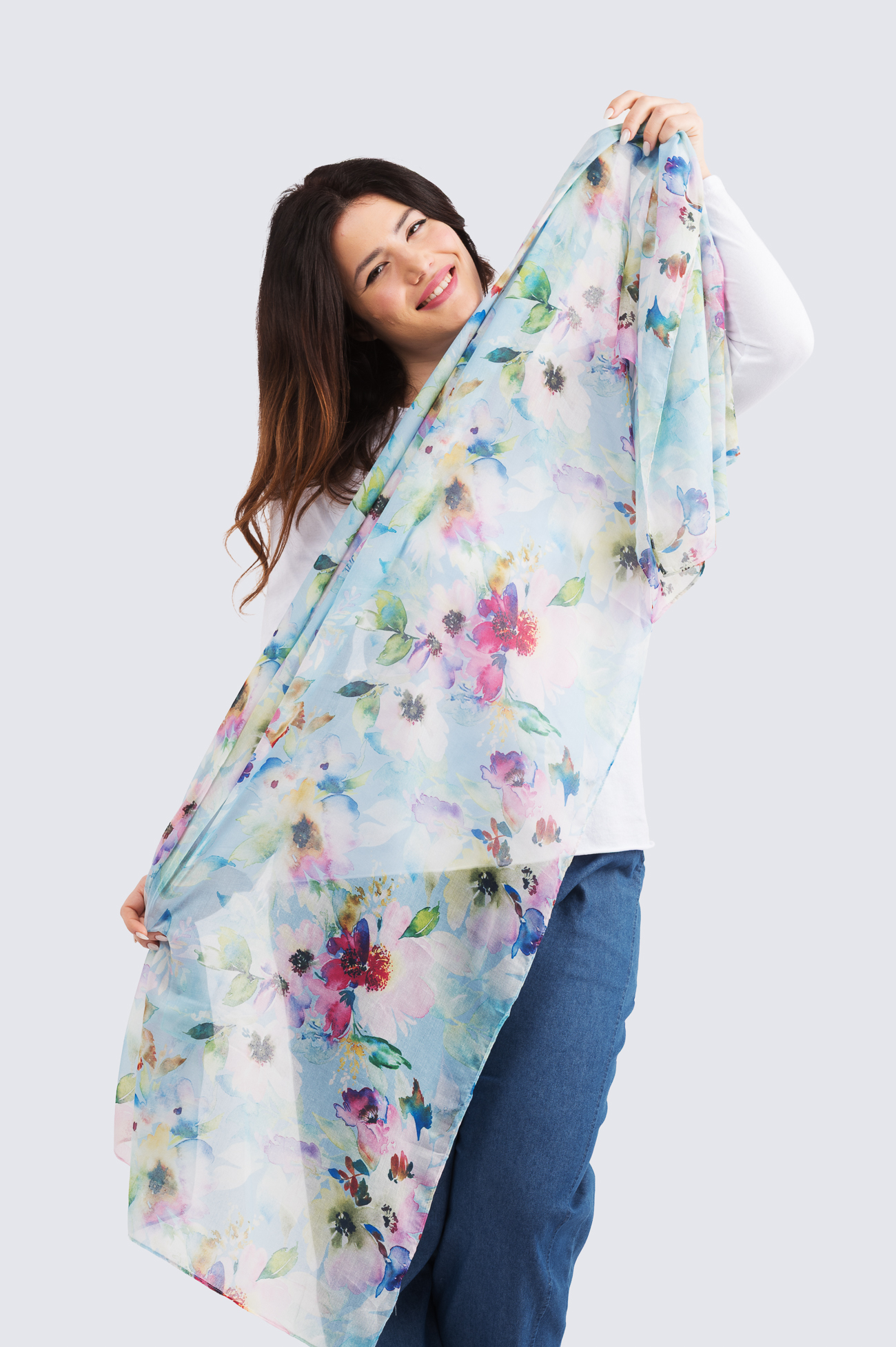 Kirjoita ensimmäinen arvio tuotteelle “Huivi vesivärikukat – Sininen”