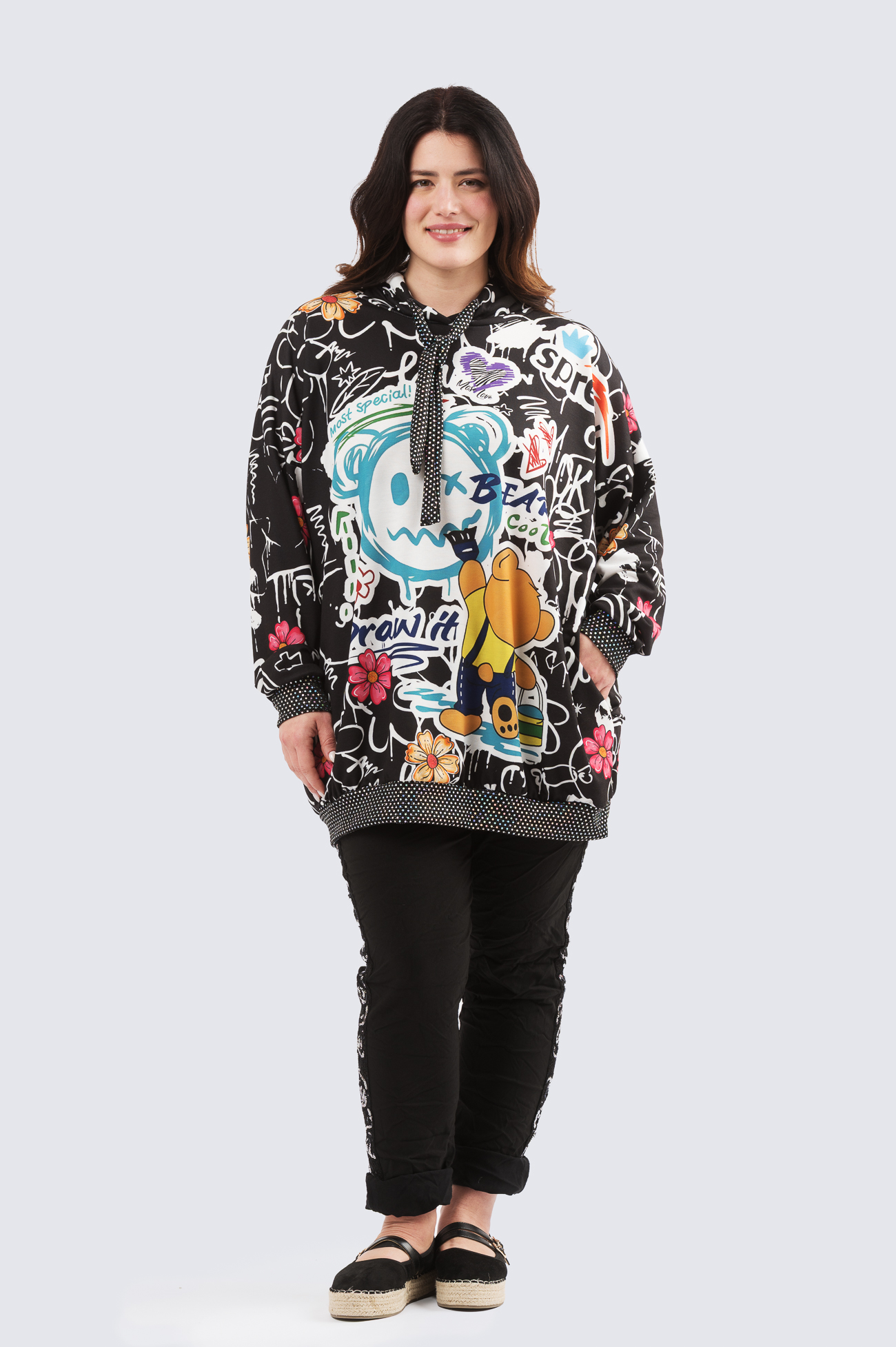 Yhden koon tuote, sopii 42-, 44-, 46-, 48-, 50-, 52- ja 54-kokoiselle (L, XL, XXL, 2XL, 3XL) halutusta istuvuudesta riippuen. Huppari on kiva myös oversize tyyliin! Kuvan malli on 177 cm. Vaatteen mitat ovat suuntaa antavia, yksittäisissä kappaleissa voi esiintyä pieniä eroja. Esimerkkejä mitoista.