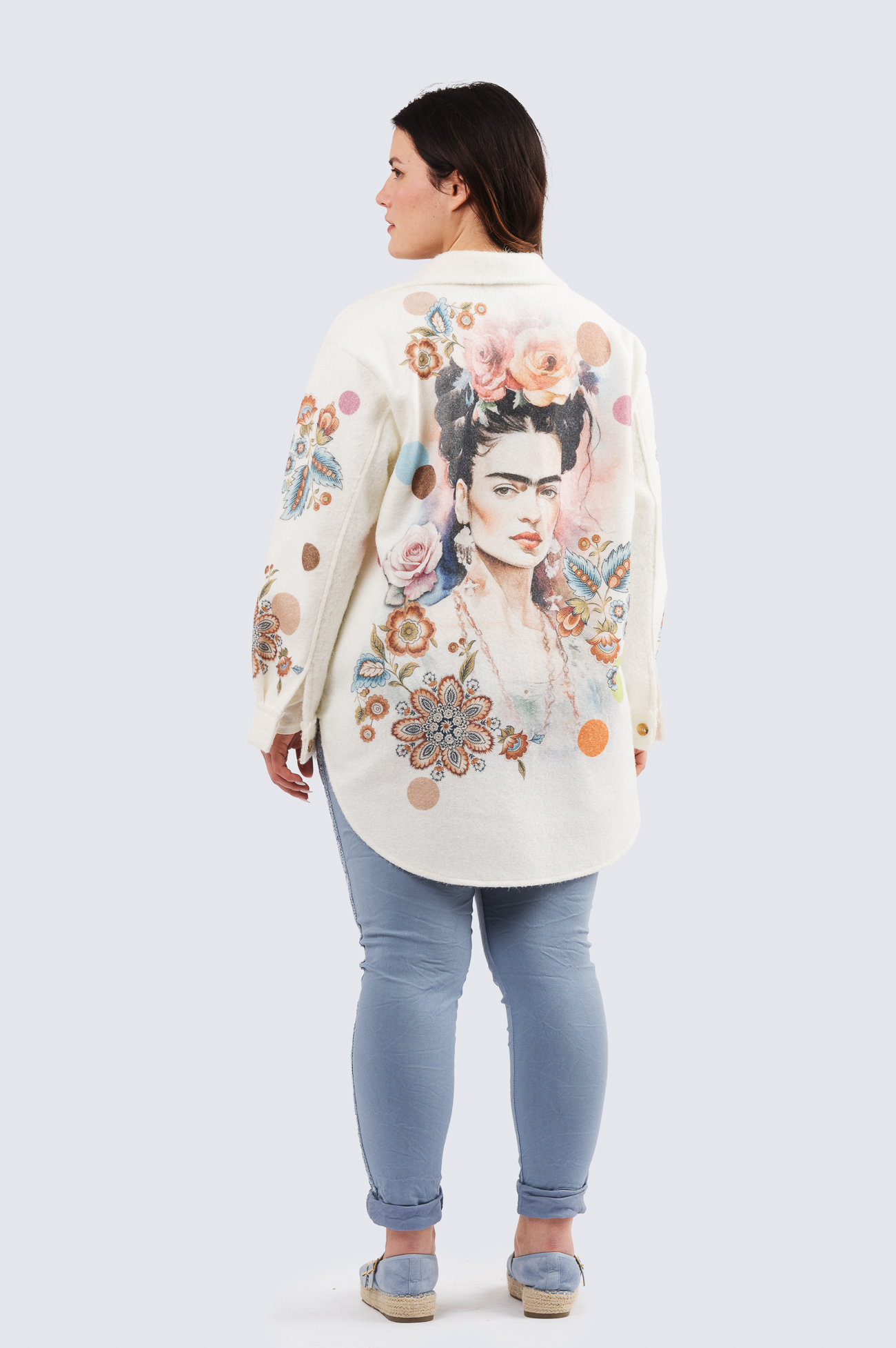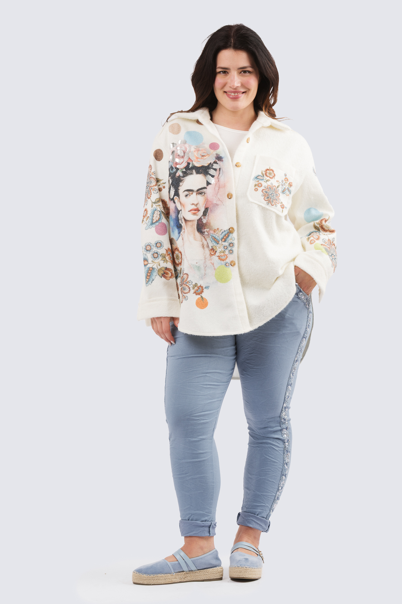 Iloiseen pukeutumiseen, kuvioitu huopamainen takki, sopii myös aukipidettävänä