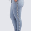 Mukavat ja joustavat housut näyttävillä paljettikirjailuilla. Vyötäröllä on säädettävä nyöri, ja housuissa on käytännölliset taskut sekä edessä että takana.