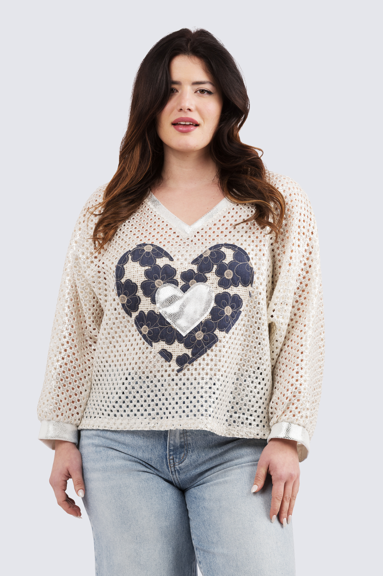 • V-pääntie hopealla kimalteella