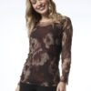 Netta pusero on moderni ja monikäyttöinen valinta, joka yhdistää tyylikkyyden ja mukavuuden. Puserossa on päällä mukavan joustava mesh-kangas, joka tuo asuun keveyttä ja trendikästä läpikuultavuutta, kun taas kiinteä joustava alustoppi varmistaa huolettoman ja mukavan käytön. Puseron kuosissa on pehmeitä, unikkomaisia muotoja, jotka tuovat kankaaseen romanttista ja herkkää tunnelmaa.