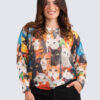 Iloisen värikäs neulepusero tuo hymyn kasvoille joka kerta, kun puet sen yllesi. Pehmeä ja kevyt materiaali tuntuu miellyttävältä ihoa vasten, ja väljä istuvuus tekee neuleesta täydellisen arjen rentoihin hetkiin tai rennompiin menoihin. Lepakkotyyliset hihat antavat puserolle kauniin laskeutuvuuden ja runsaasti liikkumavaraa. Neuleen näyttävässä kuosissa seikkailee monen monta eri väristä kissaa. Venepääntie viimeistelee naisellisen ilmeen.