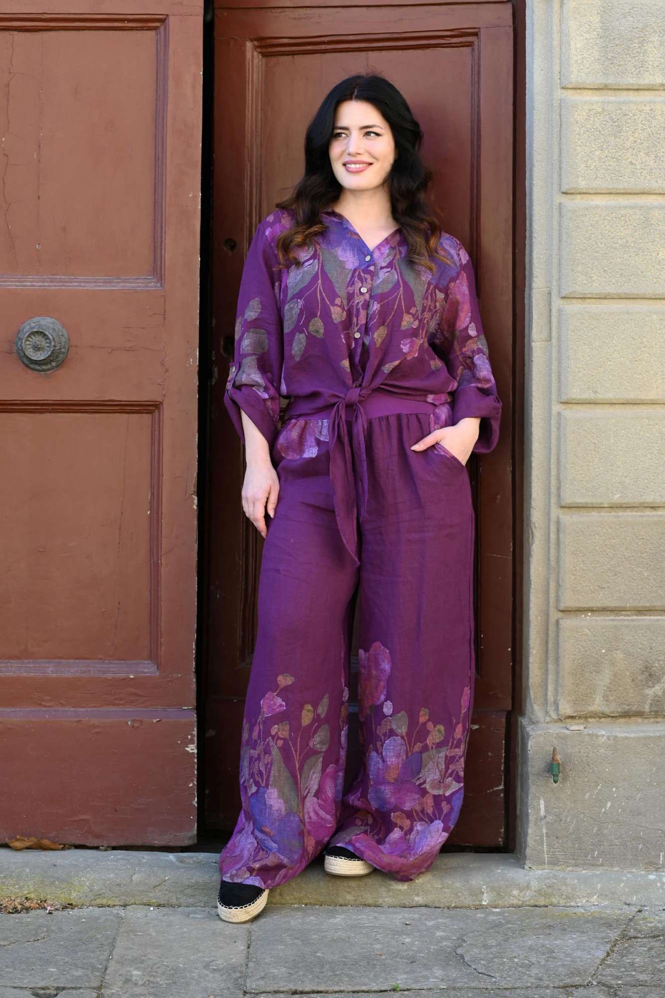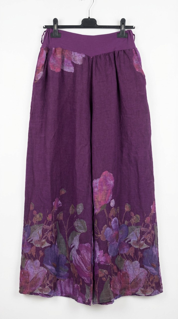 Tyylikkäät pitkät pellavahousut upealla kukkakuosilla. Huomaa, tässä housussa on pitkät lahkeet, mikäli niitä tarvitsee lyhentää, pysyy malli silti kivana.