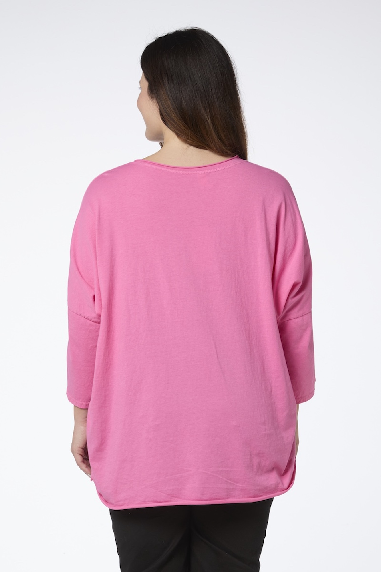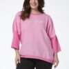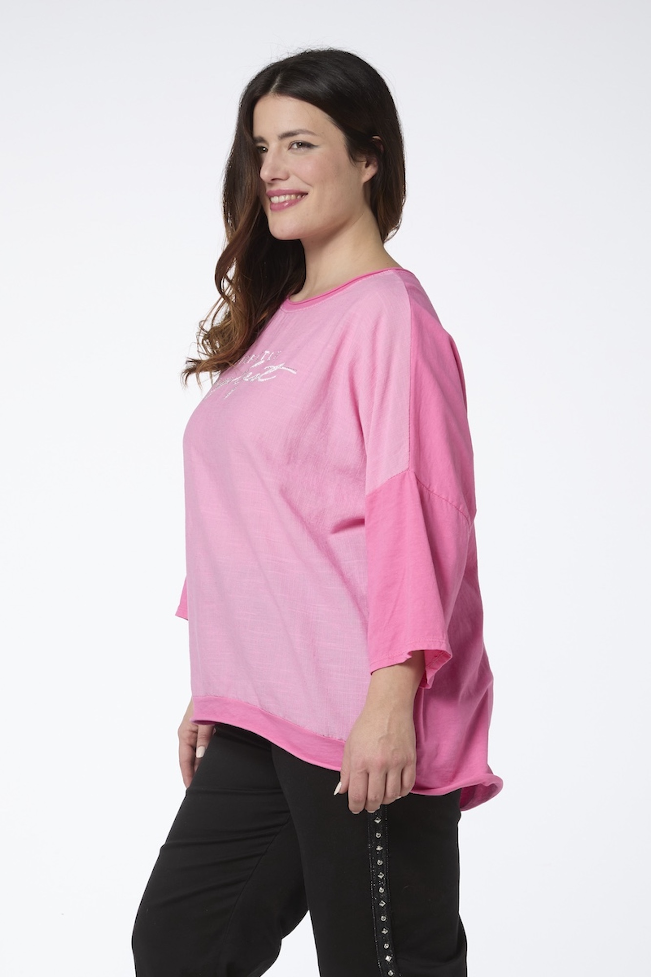 Väljä leikkaus ja pyöristetty helma luovat huolettoman tyylikkään siluetin. Klassinen o-pääntie tuo ripauksen naisellisuutta, ja etupuolen tekstiä korostavat hopeiset koristekivet, jotka tekevät puserosta erityisen. Monikäyttöinen pusero sopii täydellisesti housujen kaveriksi. Luonnollinen, mukava ja juuri sopivasti säihkyvä – arjen luottovaate.