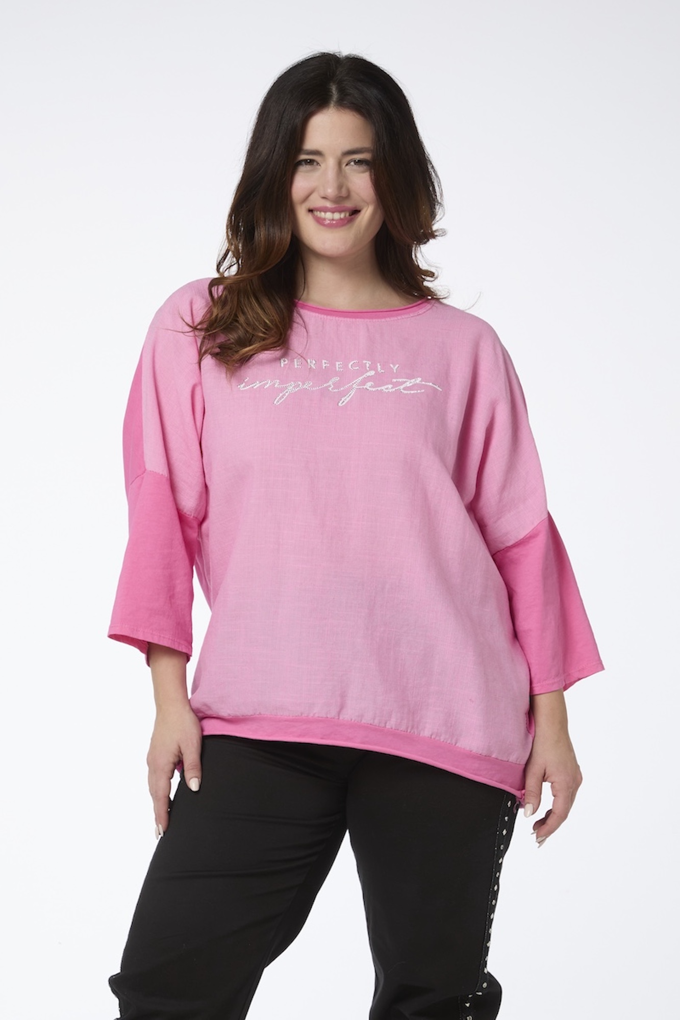 Perfectly Imperfect -pusero tuo ripauksen säihkettä jokaiseen päivään. Etuosa on hengittävää pellavaviskoosia, kun taas selkäpuoli ja hihat ovat pehmeää, hieman joustavaa puuvillatrikoota – yhdistelmä, joka tuntuu hyvältä koko päivän.