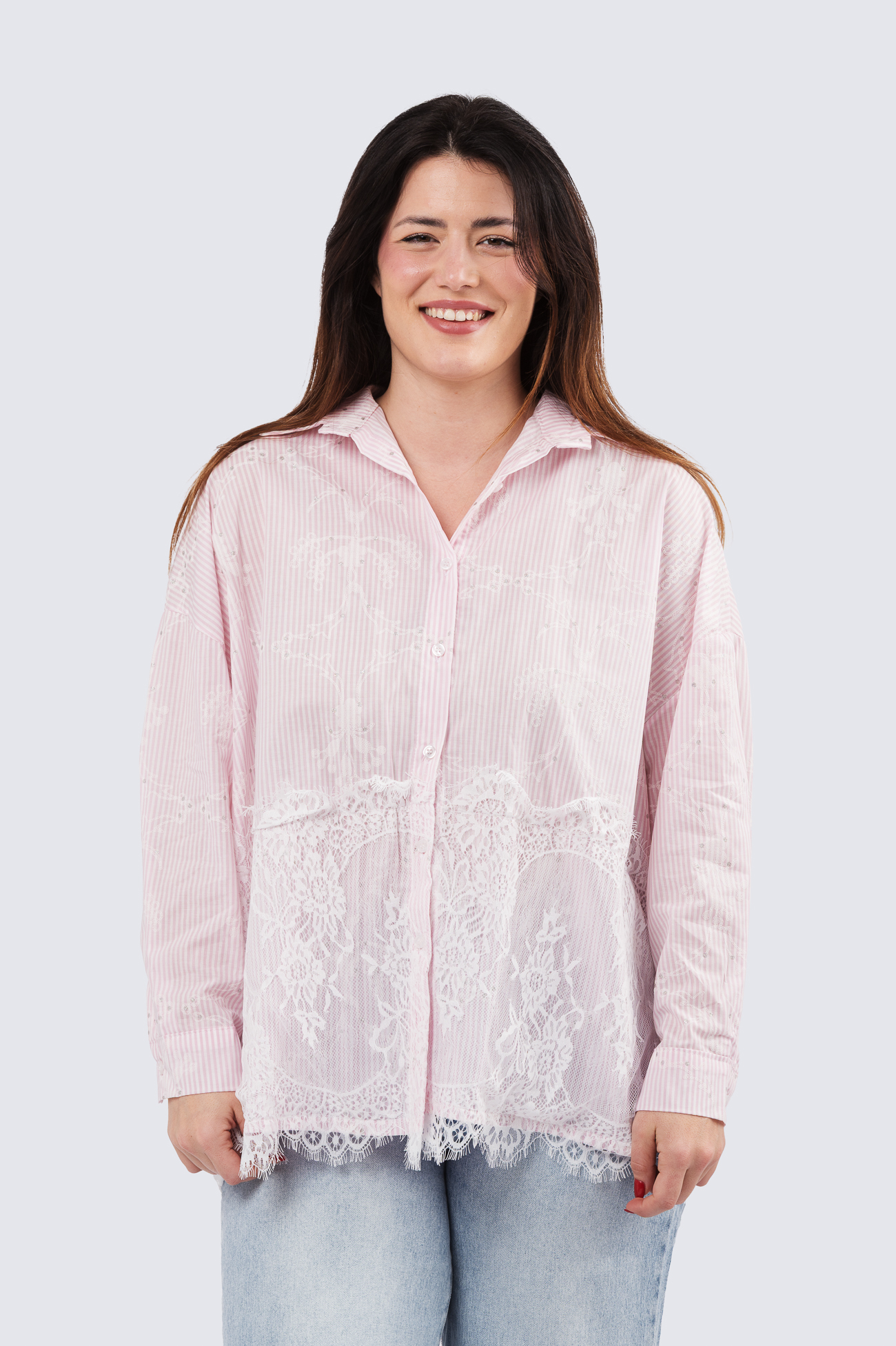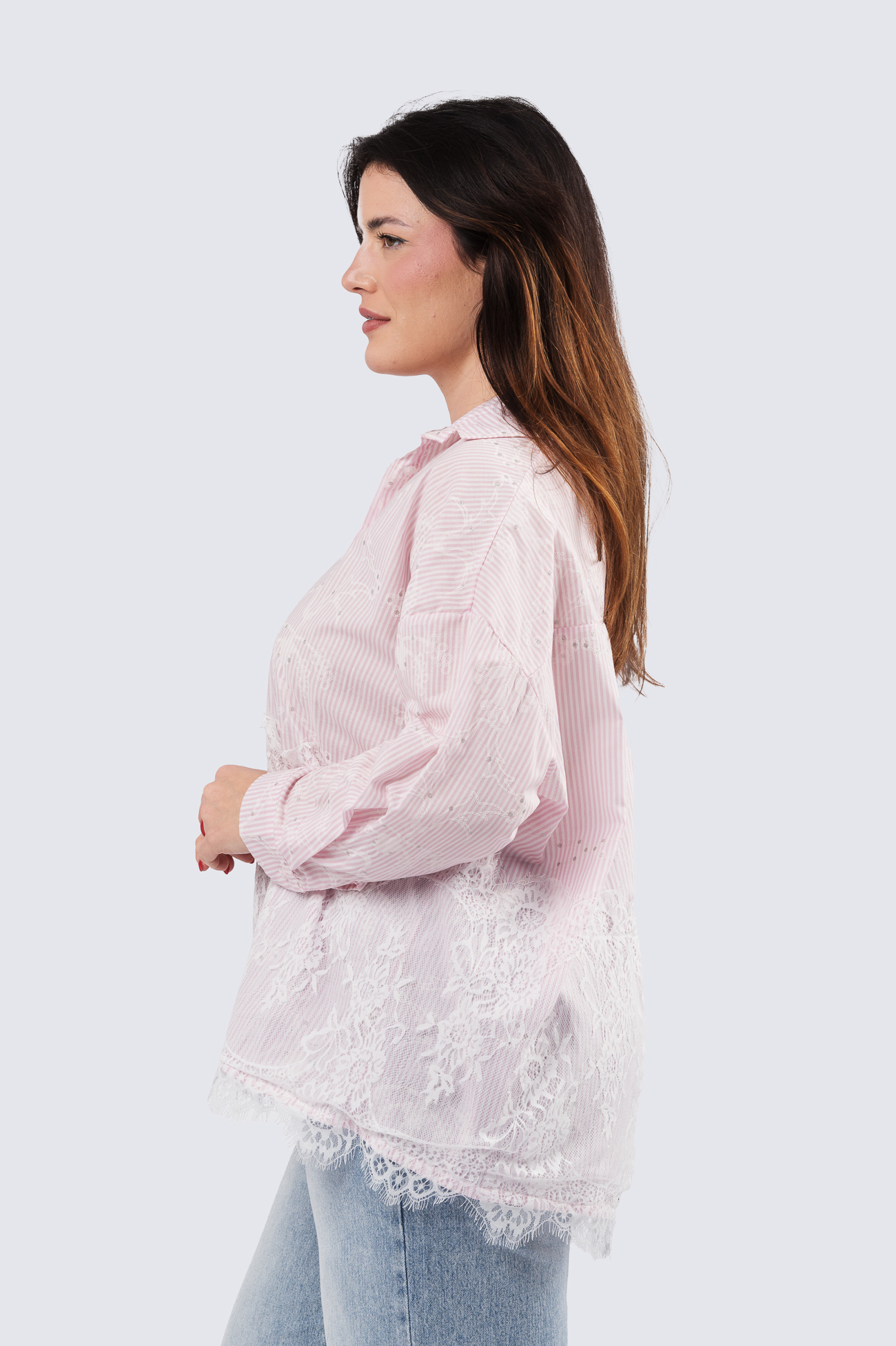 Pipsa raitapaita – naisellinen ja näyttävä kauluspaita pitsikuorrutuksella