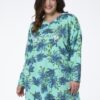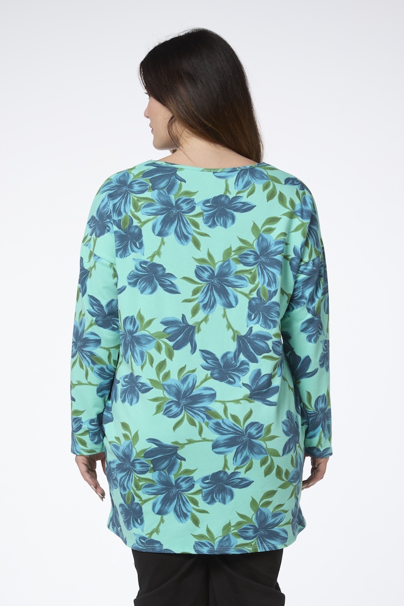 Pitkä jadenvihreä kuviotunika taskuilla.