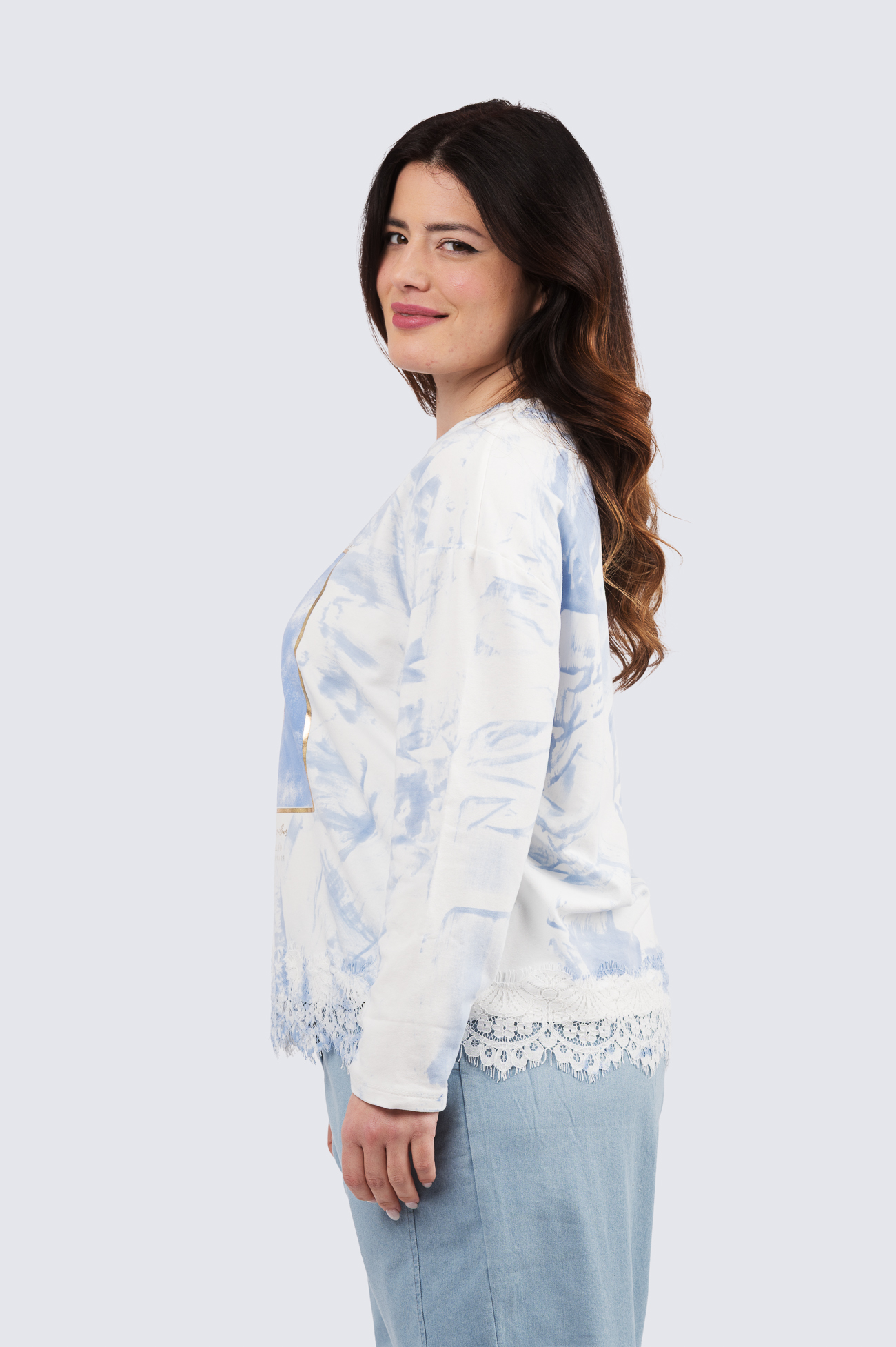 Pirteä sininen college pitsihelmalla