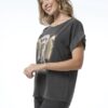 Tämä kuviollinen T-paita on täydellinen yhdistelmä mukavuutta ja tyylikästä ilmettä. Edessä oleva kuvio tuo asuun persoonallisuutta ja pientä asennetta – juuri sopivasti, jotta paita toimii sekä yksin että neuletakin, farkkutakin tai bleiserin alla.