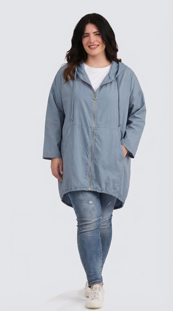 Käytännöllisessä puuvillaisessa takissa on narulla kiristettävä huppu ja syvät taskut, jonne sujautat puhelimen, avaimet ja paljon muuta.