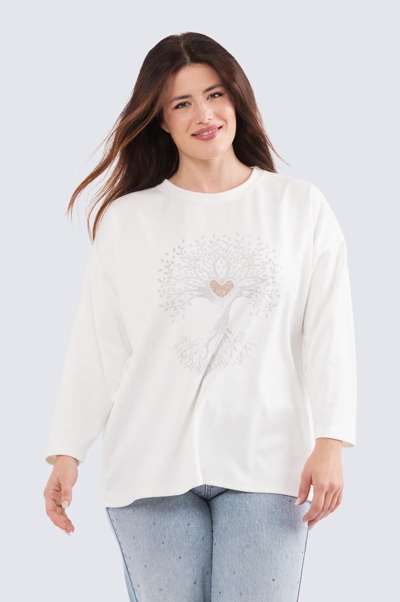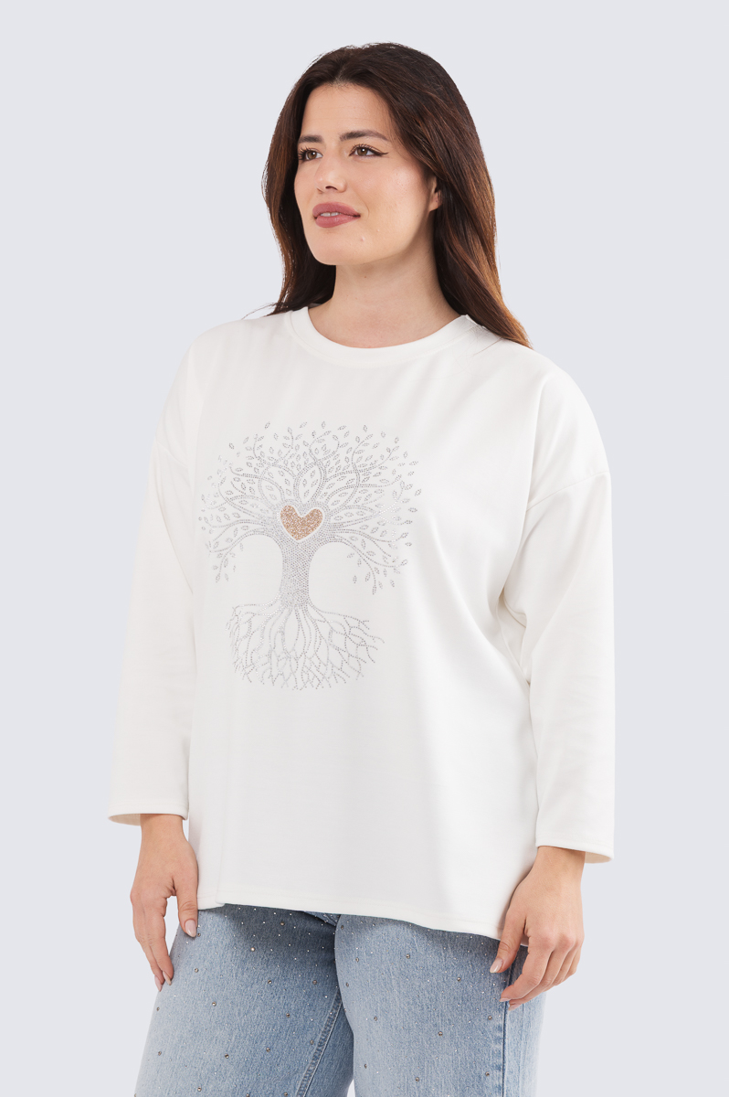 Timanttipuu college yhdistää mukavuuden ja trendikkään designin. Collegessa on pehmeä materiaali ja mukavan rento mitoitus. Edessä säihkyy upea timanttipuu, jossa kullanvärinen glittersydän ja hopeiset kimallekivet luovat näyttävän yksityiskohdan. Timanttipuu college on juuri se vaate, joka tekee arkisestakin asusta erityisen.
