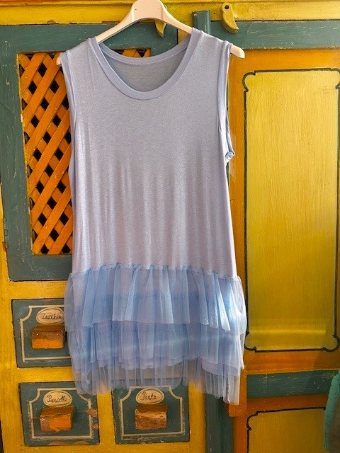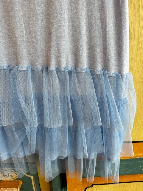 Pitkä trikootoppi tyllihelmalla