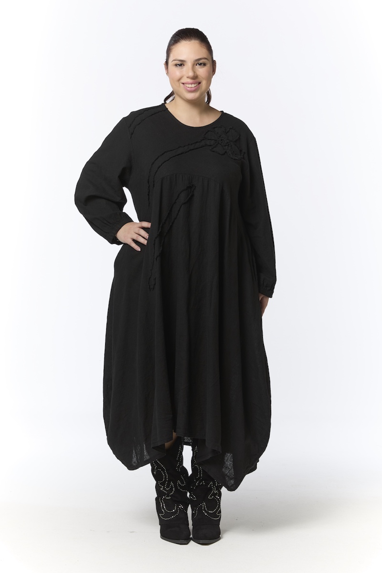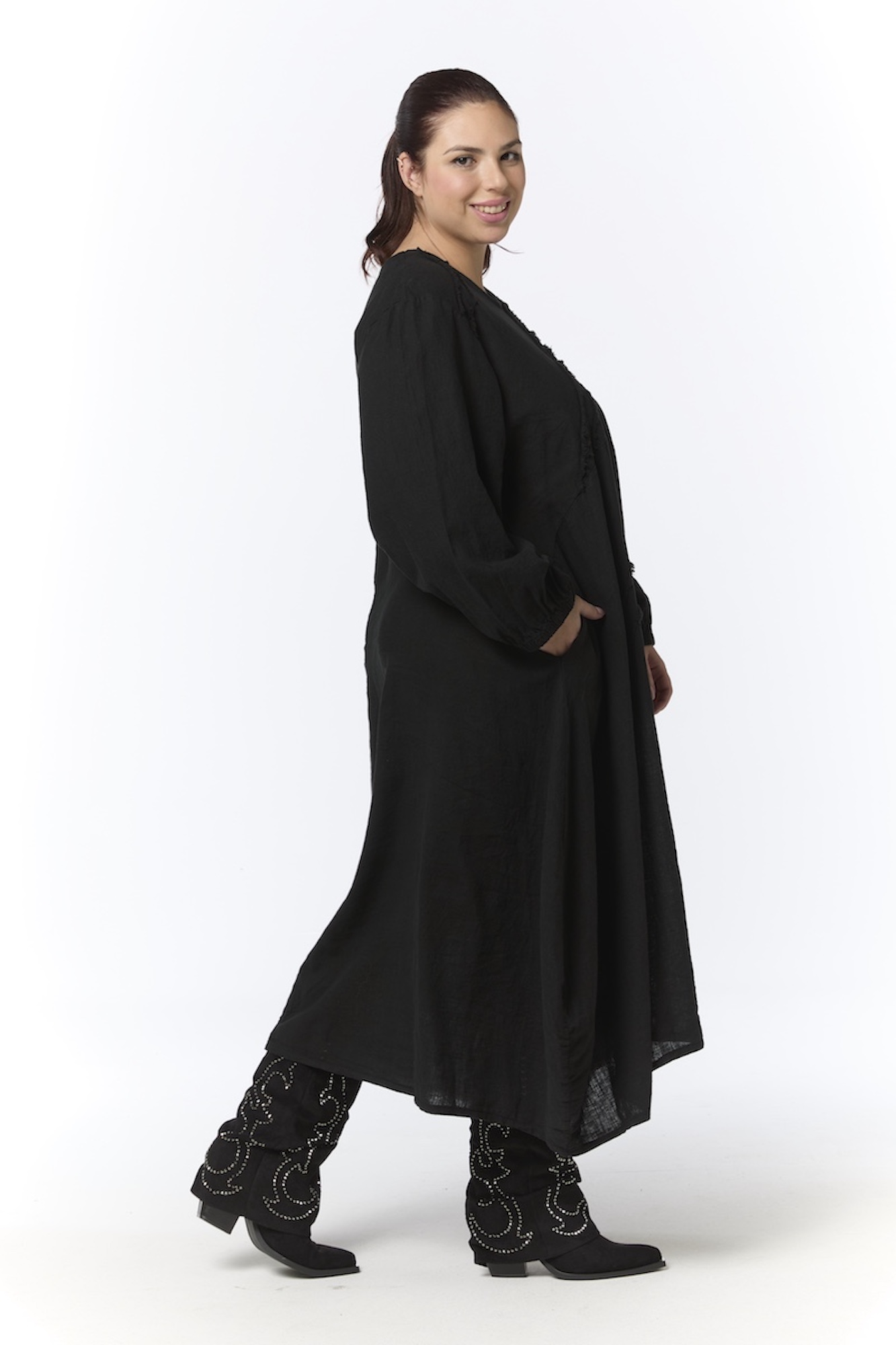 Simppelin kauniissa Ursula -mekossa on käyttömukava, runsas helma ja joustava yläosa jotka tarjoilevat liikkumatilaa ja rentoa mukavuutta aina kokoon 50 asti. Ursula -pellavamekko sopii mainiosti niin kaupungille, kuin mökillekin ja ilahduttaa käytössä ekologisella materiaalivalinnalla, joka hengittää ja tuntuu mukavalta yllä. Yksivärinen mekko on helppo asustaa arkiseen juhlakäyttöön ja käyttömukava kellohelmainen leikkaus sopii moneen eri vartalonmuotoon ja -kokoon. Pitkähihainen mekko sopii ympärivuotiseen käyttöön. Hihansuun kuminauha tekee hihasta pussimaisen ja siksi naisellisen. Mekossa on rentoutta ja monikäyttöisyyttä lisäävät taskut.