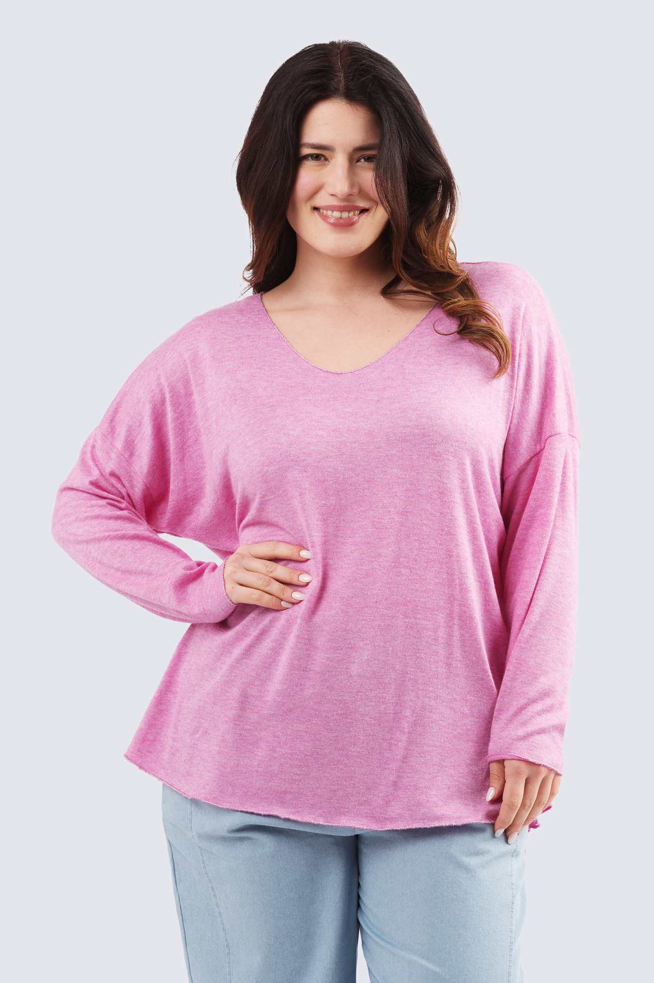 V-aukko neule – vaaleanpunainen
