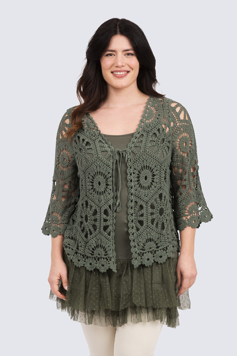 Ihana Viadana -pitsitakki on trendikkään mukava neuletakkimainen pitsitakki, johon ihastut yhä uudelleen ja uudelleen! Pue ihanan pehmeä pitsitakki topin päälle, piristä yksiväristä vaatetta tai heitä ylle hihattoman mekon kaveriksi – monikäyttöinen pitsitakki on omiaan viimeistelemään ja värittämään erilaisia asukokonaisuuksia. Pitsitakissa on edessä nyörit.