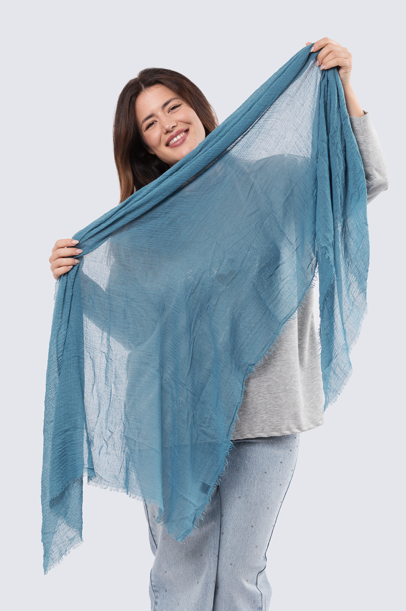 Yksivärisellä huivilla loihdit helposti väriä ja elävyyttä asukokonaisuuksiin! Kevyt huivi on helposti yhdistettävissä moniin erilaisiin asuihin. Huivilla saat loihdittua itsellesi myös turbaanin. Tässä huivissa on läpikuultava ja hiukan kreppimäisen lainehtiva pinta.